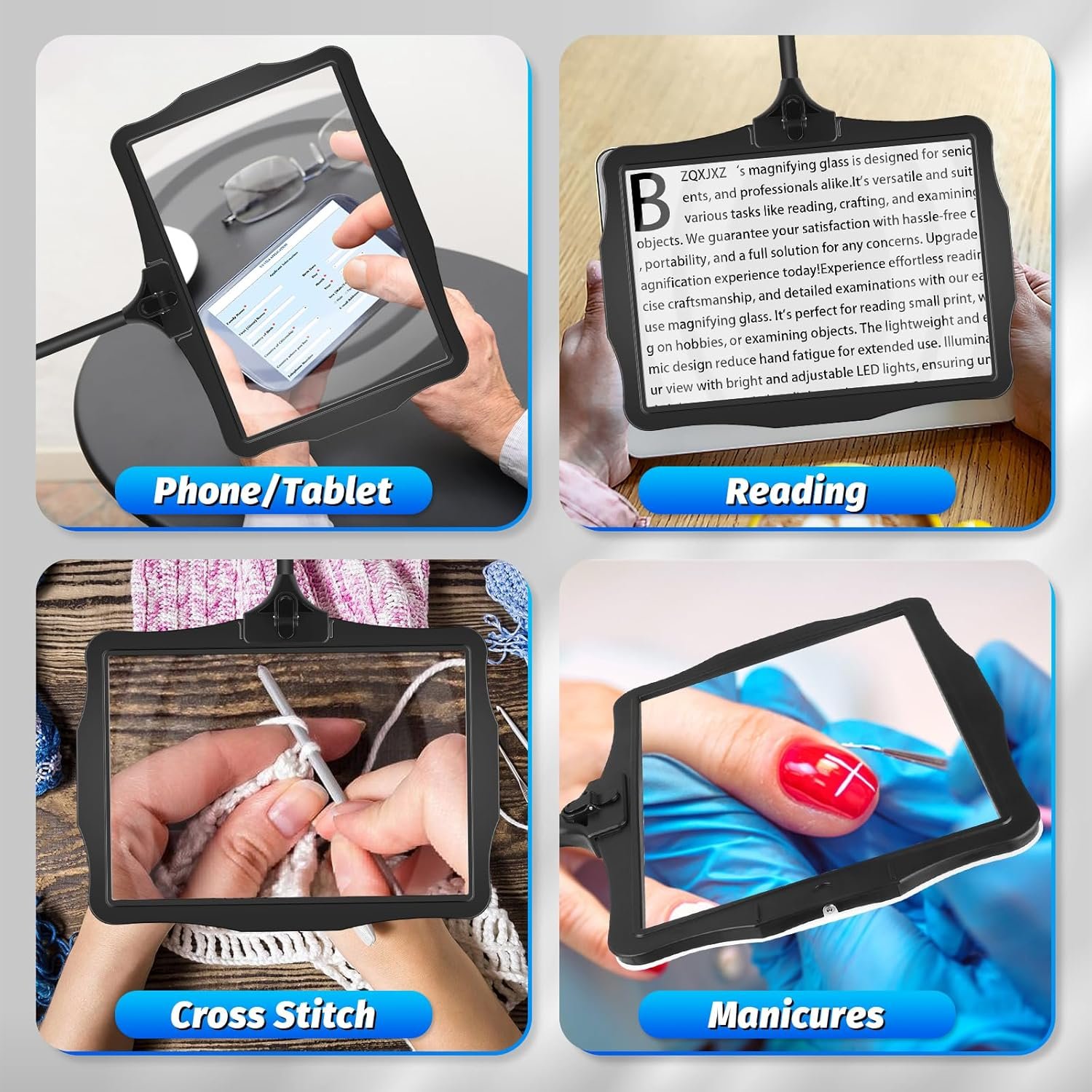 A diferencia de la anterior, tiene mayor superfície, por lo que aporta mayor campo de visión. Y además tiene luz LED. Sería más apropiada para una persona que le guste leer por ejemplo el periódico o una revista en la cafetería. En resumen, no solo leer una cosa puntual, si no estar más tiempo realizando la actividad.
